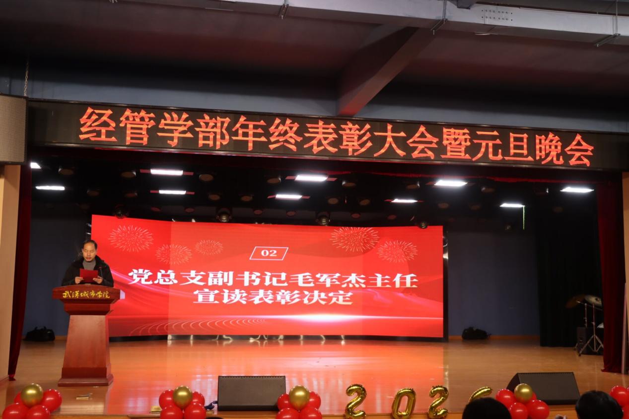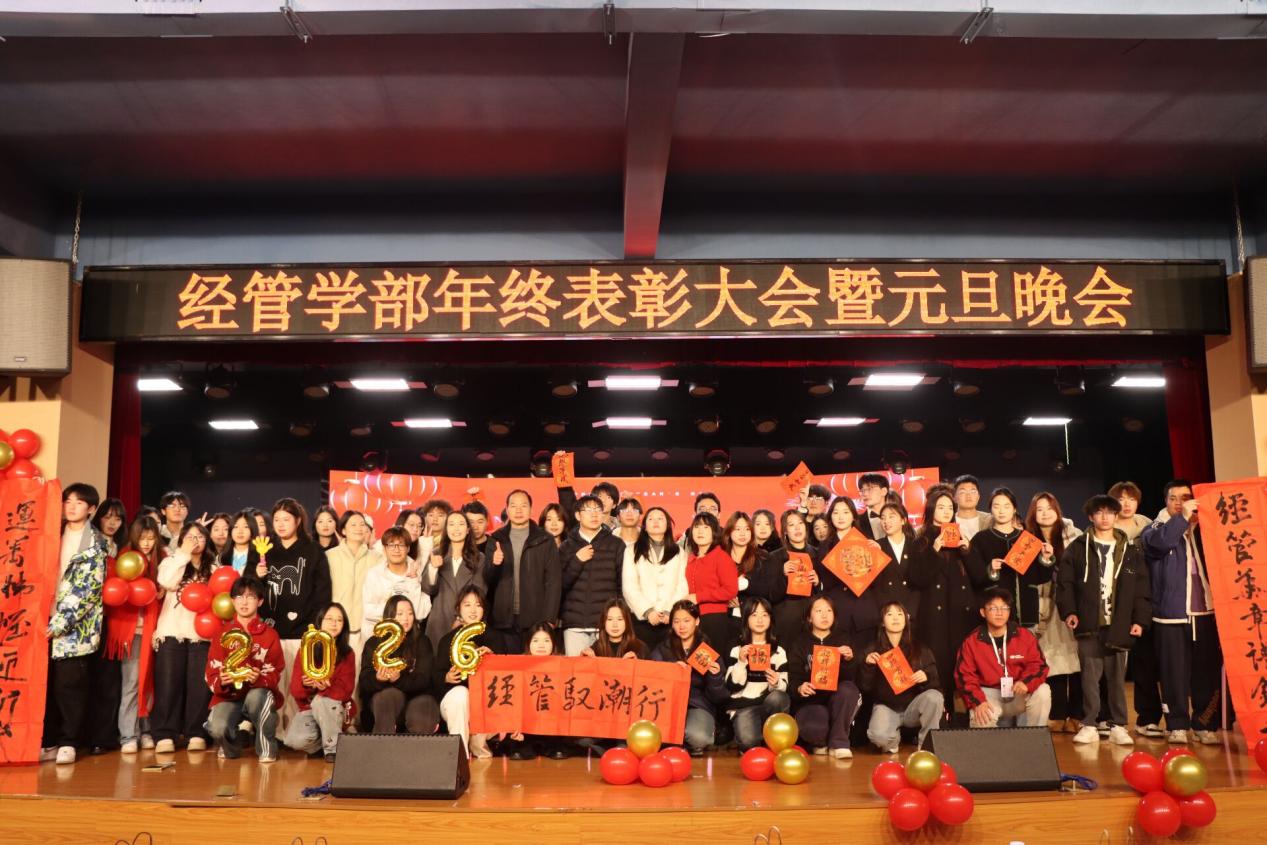 新闻网讯(记者雷琪 柯晓悦)为丰富校园文化生活,迎接新年的到来,12月29日晚,我校经济与管理学部年终表彰大会暨元旦晚会于大学生活动中心顺利举行。学部主任曾繁华、党总支副书记毛军杰和学部副主任邱玉莲、关晓玲,以及师生代表齐聚一堂,共同迎接新年的到来。