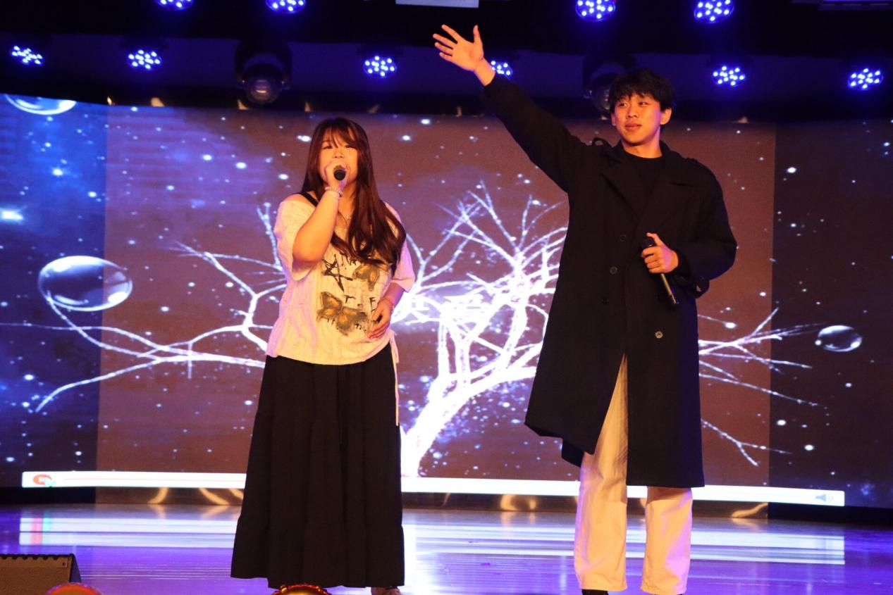 致辞结束后,晚会进入隆重的颁奖环节,在过去一年中表现突出的集体与个人依次上台接受表彰。首先由职椿黎老师、钱梦迪老师为2025年度“六好宿舍”的获奖宿舍代表颁奖,接着由吴姝霖老师和尹作成老师为荣获“活动积极分子”的同学颁奖,最后由学部副主任邱玉莲、关晓玲为荣获“先进工作者”的同学颁奖。