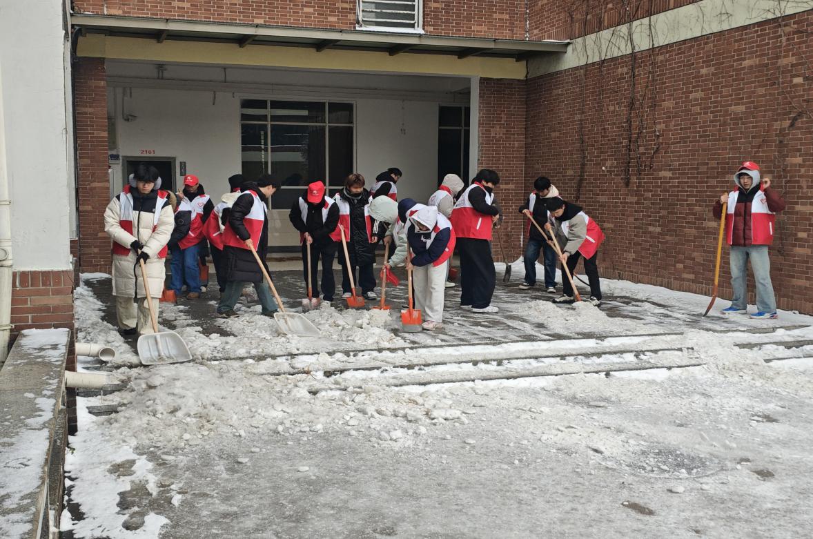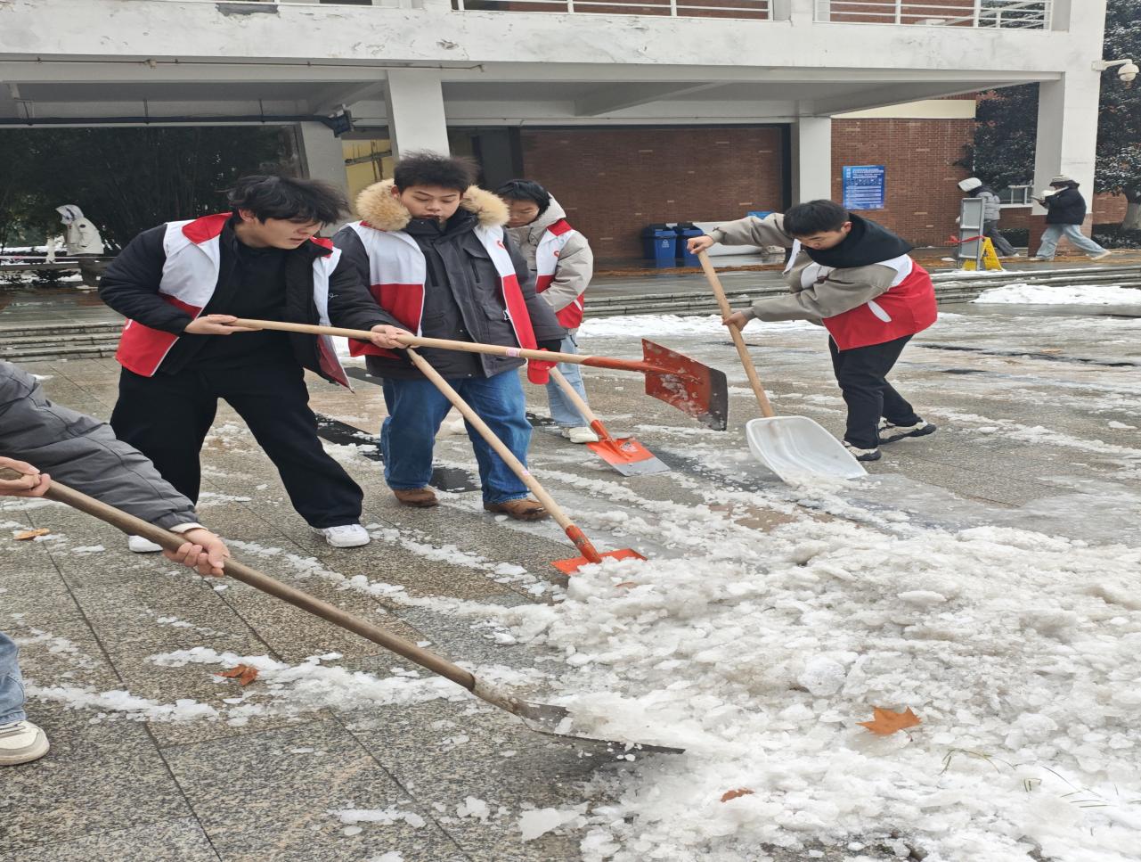 新闻网讯(通讯员 李诗媛 向书奕)1月20日,武汉迎来今冬首场降雪,学校银装素裹。但美景之下,积雪覆盖的路面逐渐结冰,给校园里的师生出行带来了极大的不便,教学楼前更是出现了湿滑难行的情况,同时潜藏着不少安全隐患。为保障校园内的通行安全,当天中午午休时段,我校大学生青年志愿服务总队和校“青年马克思主义者培养工程”第五期英才领航班共同组织起一场铲雪除冰志愿行动。
