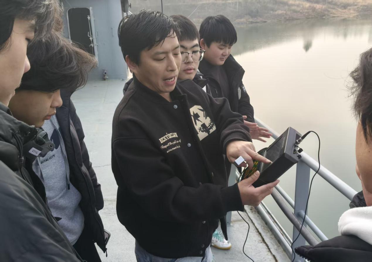 “速度要慢,手要稳,一有异常波形就要留意!”在老师指导下,同学们渐渐摸到了门道。2025级机电一班的程仕昱同学课后还很兴奋:“以前只能在远处看看军舰,这次居然能上来亲手操作!课本上的知识一下子‘活’了,果然动手实践才能学得更明白。”