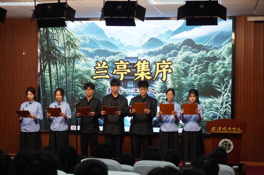 文艺表演环节,学生们以声传情,以诵明志,展现了经典文学的永恒魅力。石冬方、李炳钧两位同学带来《沁园春·雪》的激情朗诵,雄浑豪迈的词句勾勒出壮丽北国风光,激荡起深沉的家国情怀;李雨霞、李佳桢朗诵的《中文有多美》,从诗经楚辞到唐诗宋词,细腻诠释了中华文字的韵律之美与文化之深;图管会干事黄璨、李雨欣等同学集体朗诵《诗颂风华》,将青春理想与时代脉搏紧密相连,展现出青年一代的蓬勃朝气;吴熠龙、董承冰、段文涛等同学深情演绎《兰亭集序》,带领观众穿越千年,感悟魏晋风骨与生命哲思。