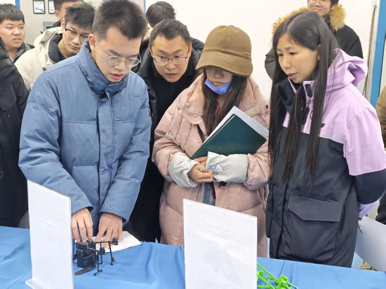 本次活动参赛作品将于1月19日至30日集中展览。机电学部党委副书记吴琼、教学副主任徐陶祎先后致辞。吴琼强调:“希望通过此次活动,能有更多学生脱颖而出,在更高水平的机创大赛中展现风采;也鼓励更多同学走进实验室,迈向更广阔的平台。”徐陶祎肯定了学部师生对机创赛事的重视,鼓励大家以赛促学、积极进取,在创新实践中取得丰硕成果。