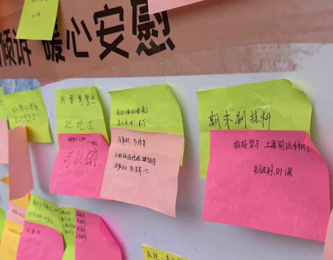 一张张便签纸成为情感的载体:有人倾诉学业与人际的困惑,有人分享生活偶得的喜悦;大家在抽取与书写间完成了一场场与陌生同学的对话。真诚的鼓励与祝福贴满展板,让烦恼被温柔接纳,让快乐被分享放大。参与同学纷纷表示,这种互动形式新颖有趣,在收获小礼品的同时,更感受到了来自同龄人的理解与支持,留下了美好的活动记忆。