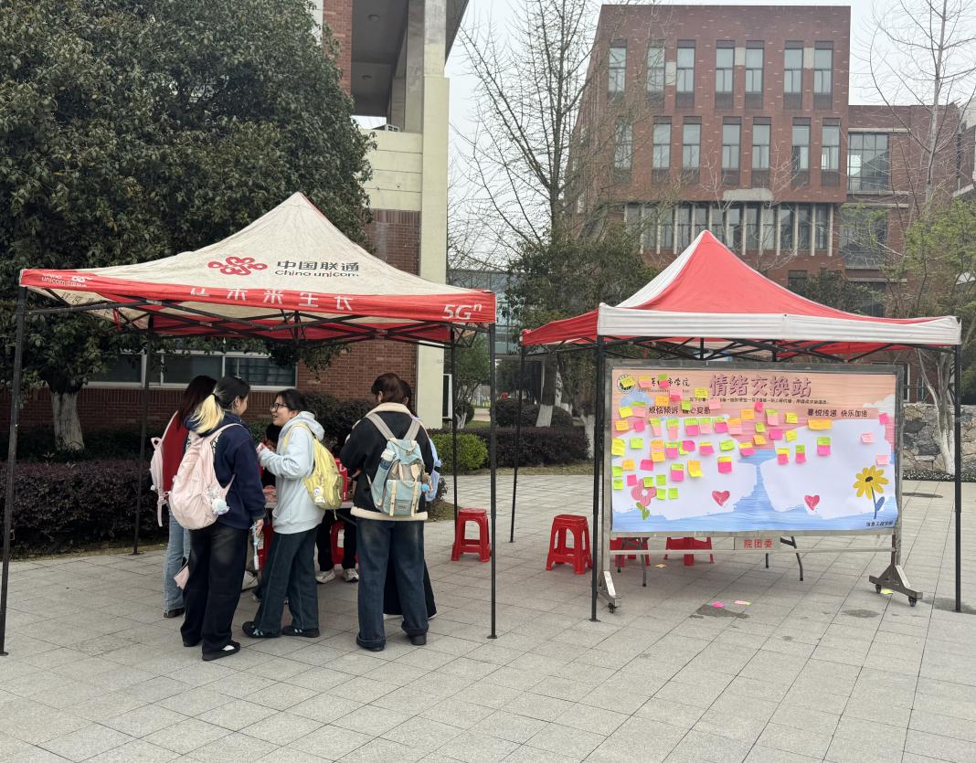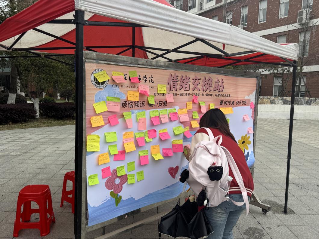 新闻网讯(记者 张含玥)为进一步弘扬新时代雷锋精神,搭建安全、包容的情绪表达与互助平台,3月24日至27日,由共青团武汉城市学院信息工程学部委员会主办、学部分团委青志队承办的“情绪交换站”主题活动,在东湖校区南一教学楼旁温情开展。