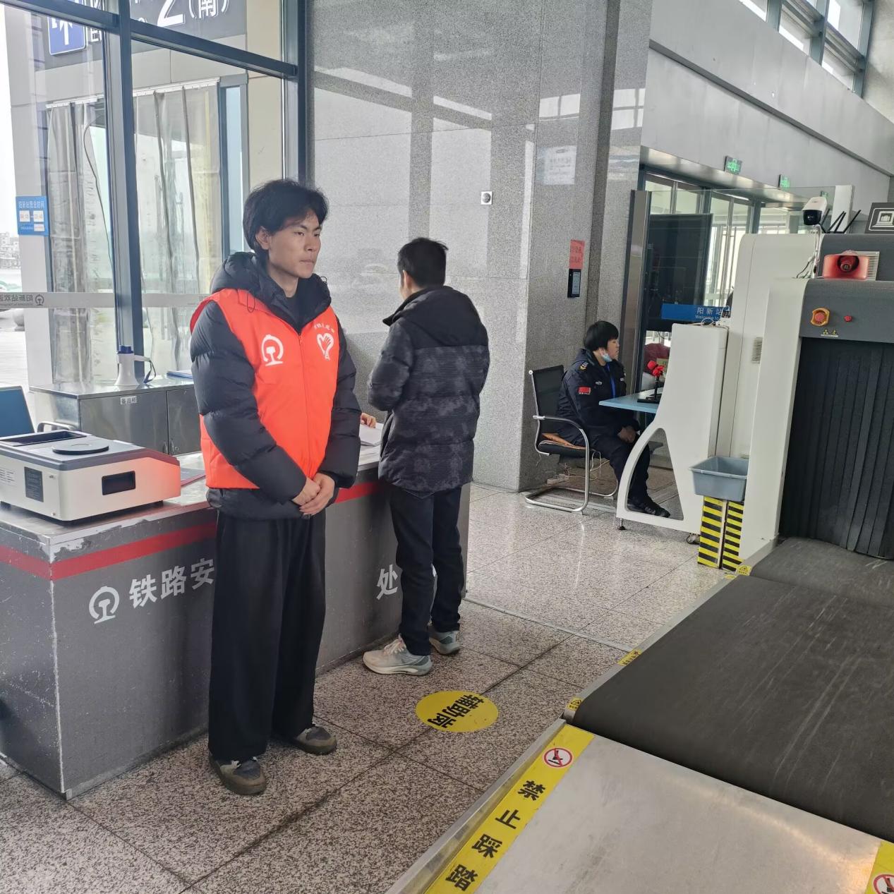 24级动画设计邓乐在湖北阳新火车站参与春运“暖冬行动”,帮扶旅客、处置遗失物品,获多方点赞。
