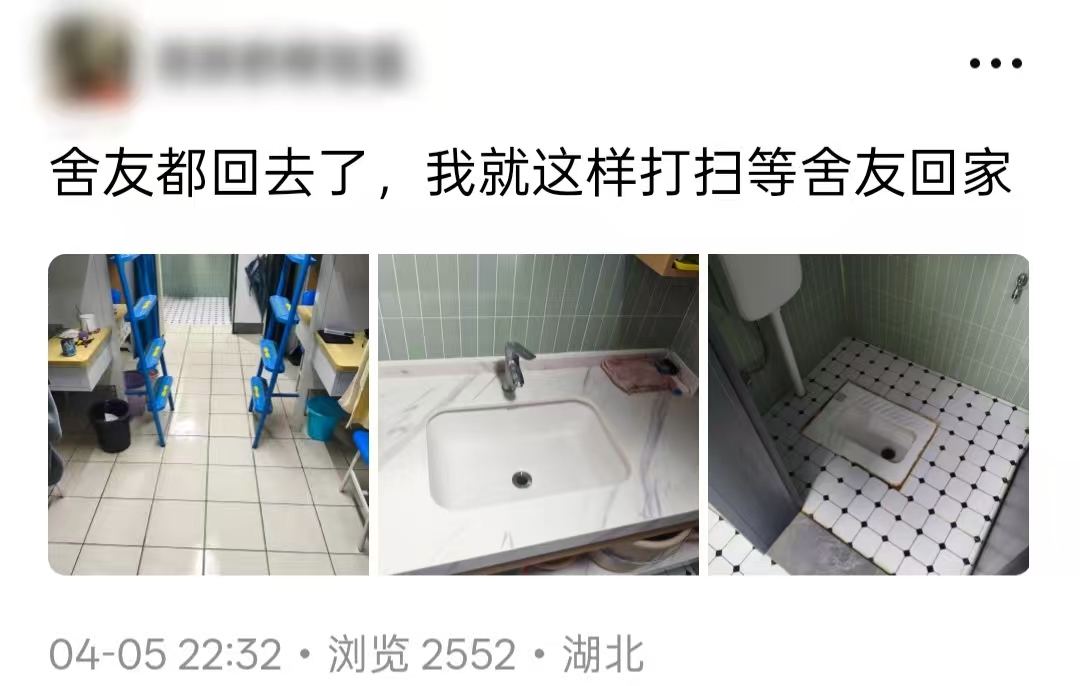那天晚上,四个男生挤在焕然一新的宿舍里,吃着各自从老家带来的特产,聊了很久的天。窗外是清明假期的最后一点夜色,屋里是刚刚打扫完的清爽气息。舍友段运说:“那一刻我觉得,这个宿舍,真像个家了。”