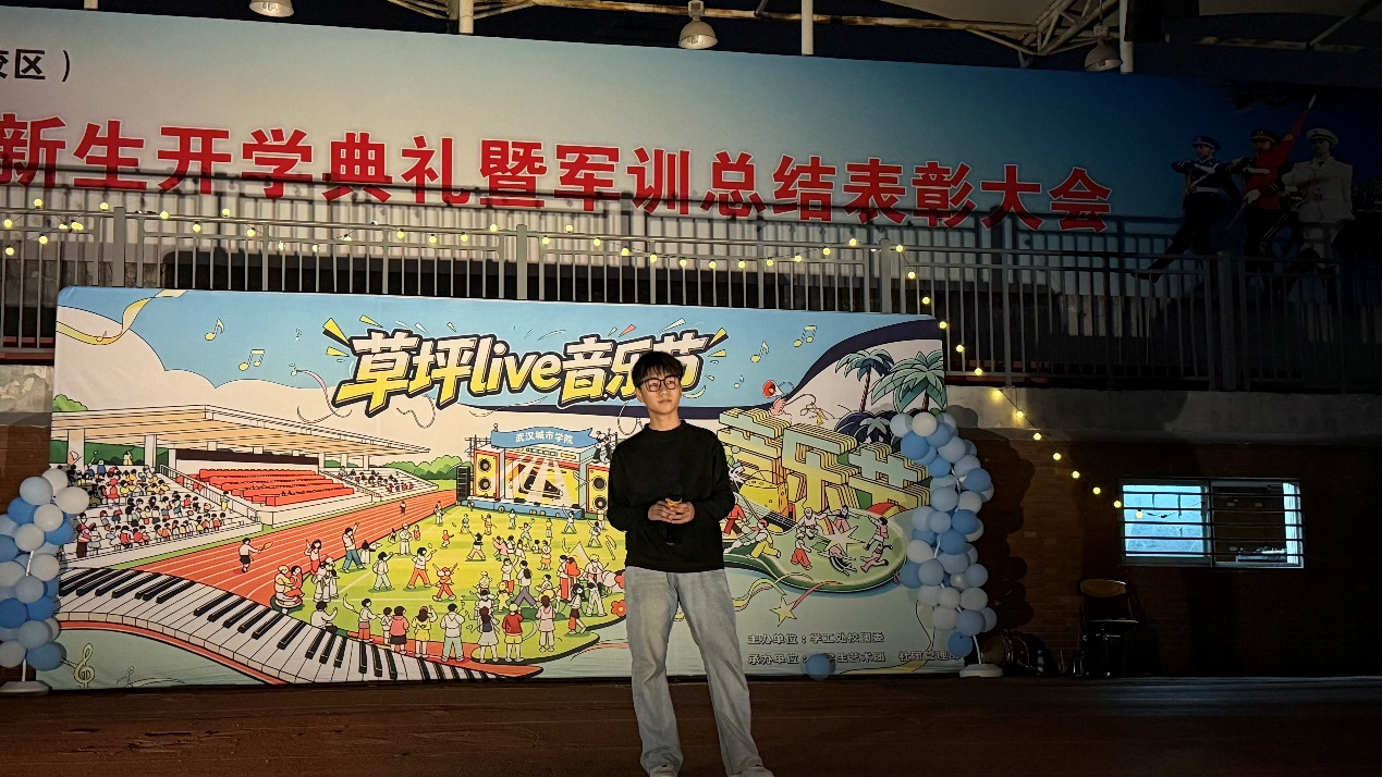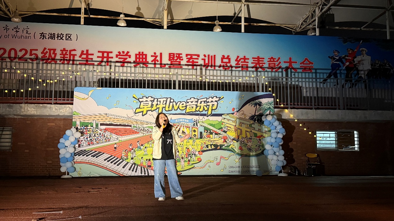 下半场精彩继续,熊蕊、晏紫、乐思雨、徐晶晶带来歌曲《Five Hundred Miles》,纯净的和声与简单的吉他伴奏相得益彰,唱出了游子离乡的淡淡乡愁与对远方的无限向往;聂雨欣演唱《同手同脚》,她用真挚的嗓音传递出兄弟姐妹般的温暖陪伴,温馨的旋律让台下不少同学轻声跟唱;吴潇桐演唱的《你还要我怎样》,他将歌词中那种无奈与不舍反复碾磨表现得淋漓尽致;潘典典表演舞蹈《catch catch》,灵动的舞步配合轻快的节奏,每一个转身都洋溢着青春的自由;大学生艺术团器乐队带来演奏《爱错》,器乐将“爱错”的遗憾与释然层层铺开,音符如细雨般落在每个人心上;金鑫一演唱《模特》,慵懒而富有张力的嗓音将整首歌的情绪推向高处,瞬间掀起又一波高潮;唐欣悦的《Always Online》轻快活泼的歌词,她用甜美的声线唱出了那份随时在场的“And I’m always online”,现场气氛愈发热烈;彭雅萌、马煜菲合唱《至少还有你》,当熟悉的旋律响起,全场观众自发加入大合唱,无数荧光棒随节奏摇摆,温情与感动在草坪上空久久回荡,为本次草坪音乐节画上圆满句号。