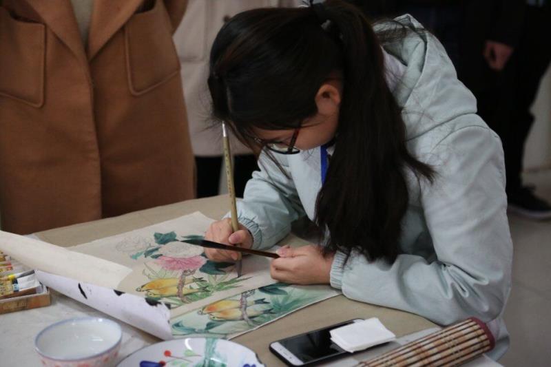 决赛现场,书法协会11级会长张亮在宣纸上写下了“以书为友”四个大字来为本次比赛开笔,现任会长虞淏文为本次比赛致词,宣布比赛开始。现场有人认真临摹国画、有人细致书写古诗,空中处处飘散着墨香。硬笔组和软笔组多以楷书为主,硬笔方正,软笔圆润,写出来的字体各有千秋。国画组多以山水画为主,不仅有水墨画,还有彩墨画,一个水乳交融,酣畅淋漓;一个色彩明亮,贴近现实,一黑一彩,各具特色。选手创作完的作品全都会分类挂到墙上,供大家欣赏、点评。