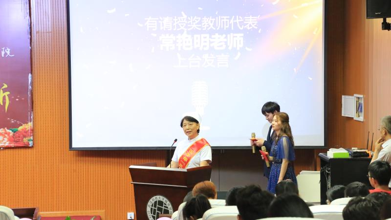 常艳明老师作为“教学育人”先进个人代表发言。常老师从事护理教育事业十一载,处处以身作则,严于律己,用榜样般的品德影响着学生。