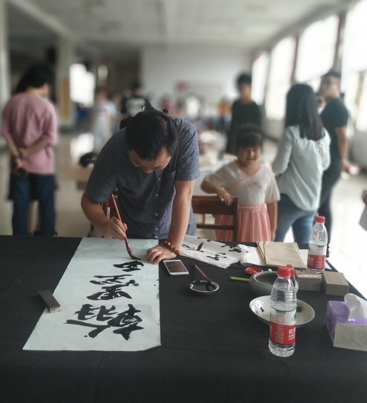 陈亚斌老师开笔题书“以笔会友”,并提出期望:“练好书法是长期坚持沉淀的结果,不要偷懒,不要放弃,用一个字概括就是‘恒’!”书友们在墨溢书协干事们的陪同下进入书画创作区,落席、摊纸、蘸墨、书写一气呵成,作品完成后在现场展出,老师们对作品一一评鉴并给出意见,现场气氛十分热烈。