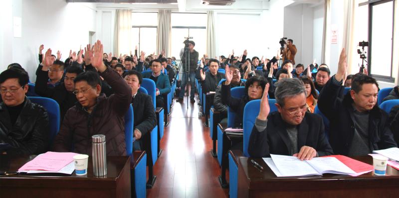杜磊主任作表决和选举代表、章程(草案)起草以及财务管理办法和会费情况的说明。提名总监选人、监票人、计票人;表决通过选举办法;选举理事和监事。通过提议和投票表决,陈建勋同志当选会长,王军、肖军、王汉林、汤勇、李咏成同志当选副会长,杜磊同志当选秘书长,费晓亮同志当选副秘书长。