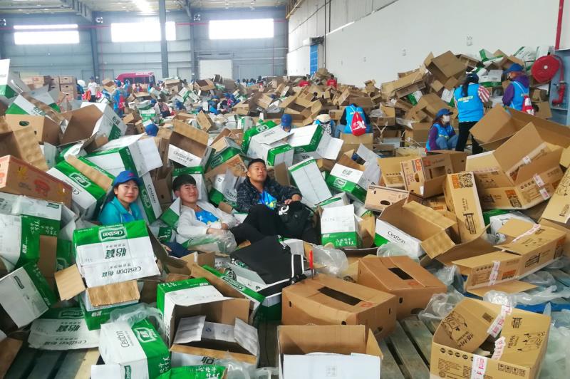 汉马负责人许振涛告诉记者“工作量确实很大,一些女生忙完之后,累得直接趴在包裹上了。”下午17:30,志愿者们结束了一天的工作,返回学校,返程的车上疲惫的大学生们,互相倚靠,不一会全都睡着了。