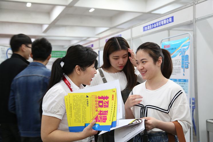 大一学生参加招聘会,老师亲临现场为学生加油打气
