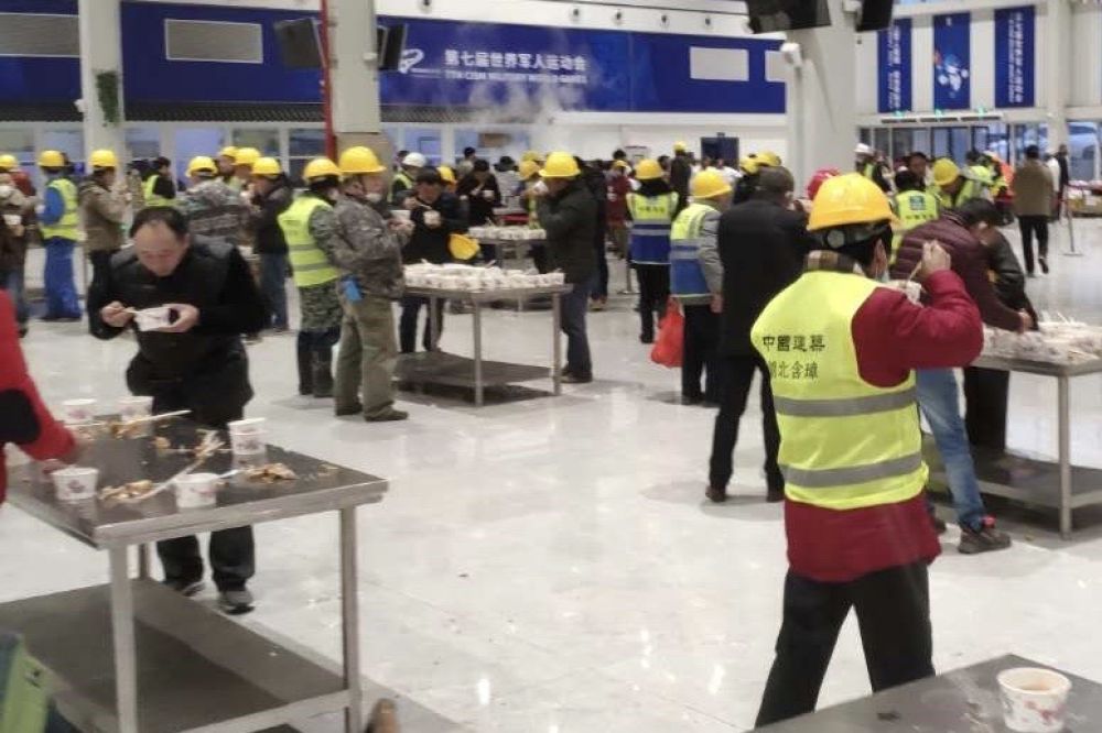 雷神山医院建设者们在食堂吃饭。图片由受访者提供