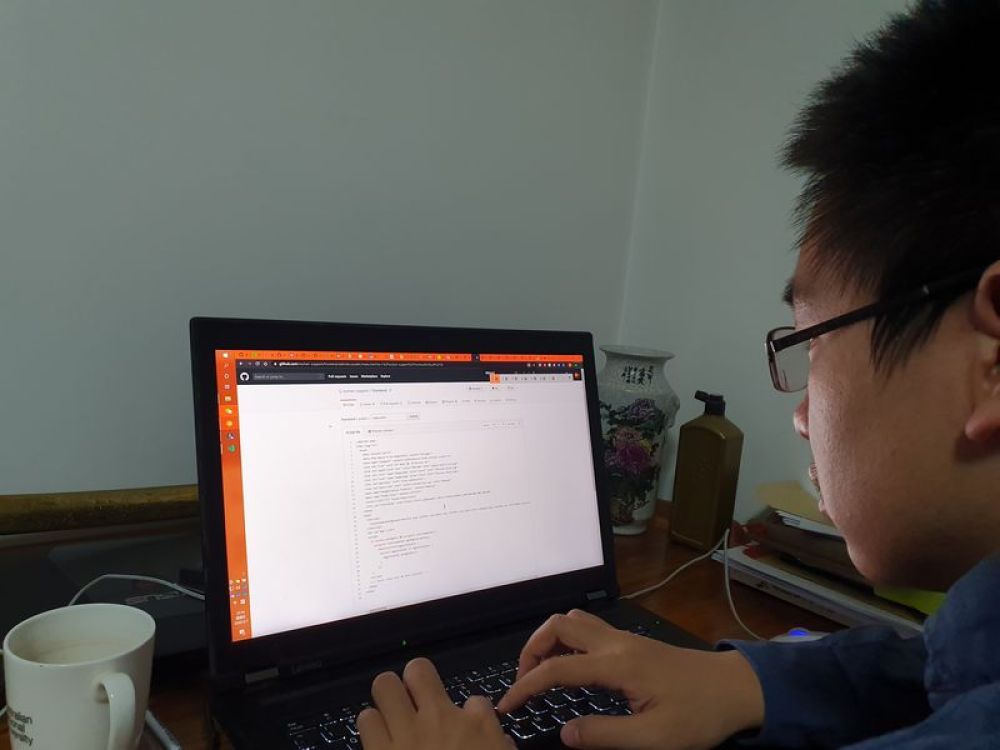陈陟原在编写代码。图片由受访者提供