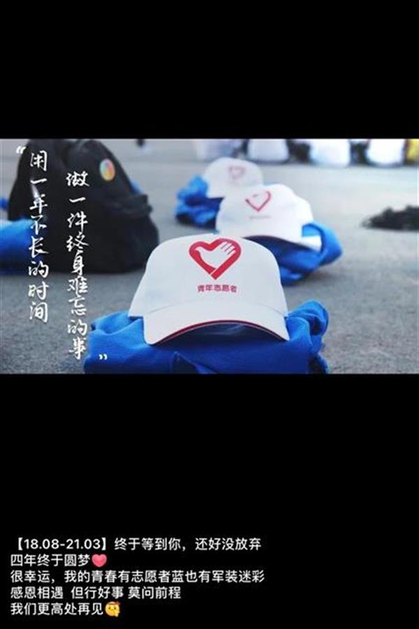 2020年新冠疫情暴发,看着冲锋在一线的抗疫英雄们,郑昕婧的参军志向愈发坚定。对于已经22岁的她来说,这是最后一次机会了,然而这一次她还是未能如愿。后来,作为优秀学生代表的她入选“西部计划”。对此,郑昕婧表示“如果能当兵,我也会选择去边疆,既然有机会作为一名志愿者去新疆,也算是实现了我的边疆梦吧。”于是她毅然选择去到了新疆。在西部计划志愿者服务期间,她作为“星图志愿服务队”的队长,带领这支队伍举办了“新年愿望实现计划”“与湖南第一师范学院的云合作”等众多的活动,在三师图木舒克市留下了许多美好回忆。