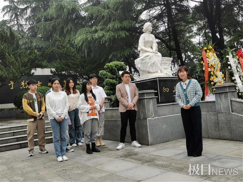 “我们今天来触摸和走进的就是中国共产党唯一女创始人,中国妇女运动先驱,无产阶级革命家——向警予烈士与她的时代。”陈凤将向警予的故事娓娓道来,她语速轻柔、步伐缓慢,借着陵园的不同景致展开课堂,讲到动情处竟红了眼眶,学生也随之动容。大家跟随陈凤的脚步,触摸着一砖一瓦、一草一木,站在龟山山顶领略向警予的豪迈气魄和忠贞精神。学生张泽宇说:“了解了铿锵玫瑰向警予的事迹后,我感到十分敬佩,还深刻认识到我们今天的幸福生活是用烈士们的鲜血和生命换来的,我们要更加珍惜如今这个国富民强的时代。”陈凤带领学生面向向警予烈士雕像深深地鞠躬,以表缅怀和追思之情。