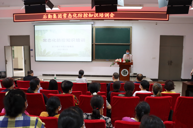 新闻网讯(记者徐书格)6月9日下午,我校特邀华中科技大学同济医学院附属梨园医院医生陈熙熙、汤辉、樊玲在南一(1)号报告厅开展常态化防控院感知识讲座。后勤集团副总经理曾剑,总经理助理胡泽林,各中心主任、主管,食堂及超市人员参加讲座。