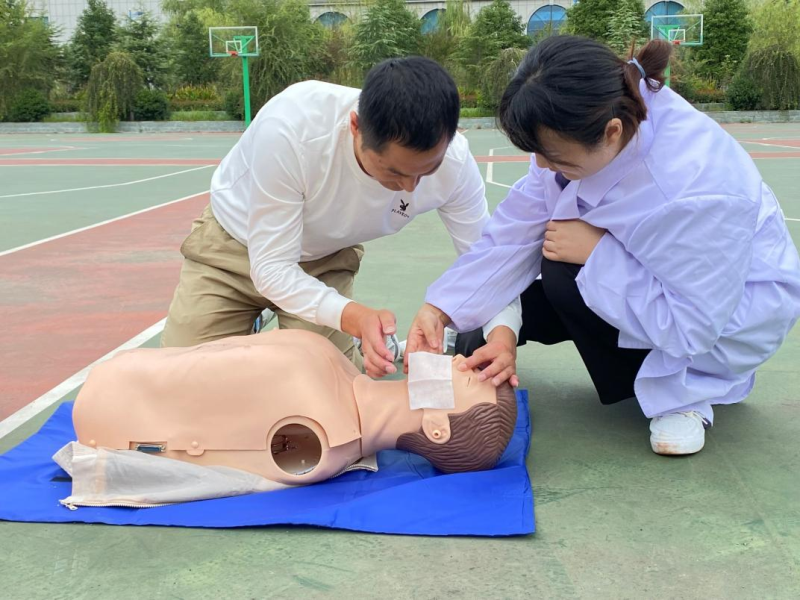 新闻网讯(通讯员 张洁) 为使学生学习了解现场急救知识,积极参与急救活动,掌握正确的急救方法。医学部联合湖北省职业教育急危重症护理专业李道工作室于10月13日在红安校区开展了2021级新生急救培训活动。医学部党总支书记罗健、党总支副书记杜征帆、综合科科长孙文、工作室创始人及药护系主任李道、2021级新生辅导员徐仕雄、詹宇航与工作室的志愿者们参加了活动。