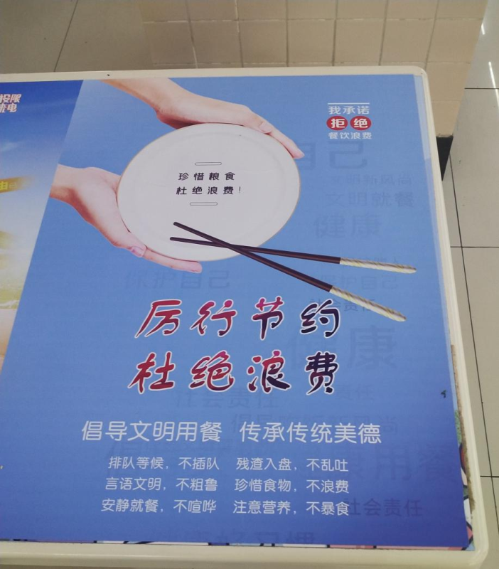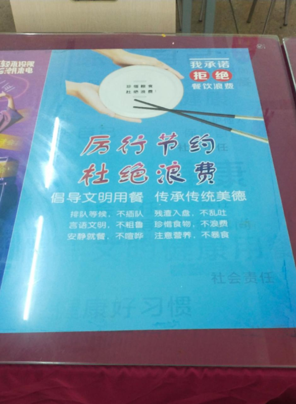 新闻网讯(记者田莉)“厉行节约,杜绝浪费。”走进学校食堂,餐桌上一条条醒目的标语率先映入眼帘。