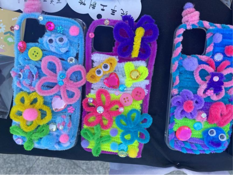 艺术学部2020级视觉传达设计专业学生王丹阳说:“作为一名手工艺人其实很不容易,制作和销售都很难,当看到有老师和学生特别喜欢我的作品时,我特别开心。”王丹阳在此次市集上最受欢迎的作品是一组扭扭棒做的手机壳,其中颜色的碰撞加上与生活的结合,在众多产品中脱颖而出。