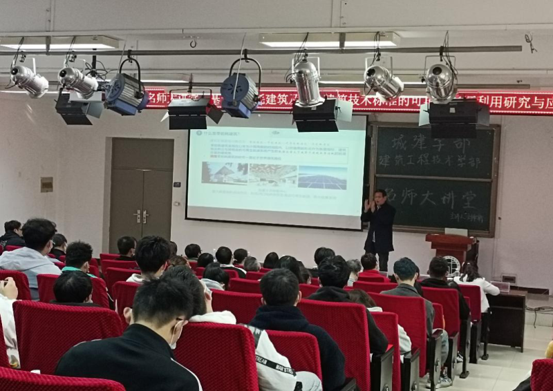 新闻网讯(通讯员李雨寒)11月18日下午,城建学部建筑工程技术系在南一报告厅举办名师大讲堂讲座。该学部主任刘秋新教授围绕“基于零能耗及绿色建筑技术标准的可再生能源利用研究与应用”主题为学部各系领导、教师以及学生作精彩演讲,使全体师生对环境科学、绿色建筑有了更深刻的了解与认识。