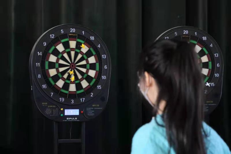 “十分!”“这个女生好厉害啊!”“她叫什么名字呀?好想认识认识!这个飞镖也太溜了。”江诗瑶投掷的飞镖一次次正中靶心,围观的学生不时发出惊呼声、赞叹声。随着比赛的进程,江诗瑶保持着领先优势,状态更是渐入佳境,不断刷新着自己的分数,令人拍手称绝。“我平时就很喜欢飞镖这项运动,所以就报名参加了这次比赛,拿到冠军有些出乎我的意料之外,有实力也有运气的成分吧,未来也会继续用飞镖来充实我的课余生活。”比赛结束后,江诗瑶对记者说道。