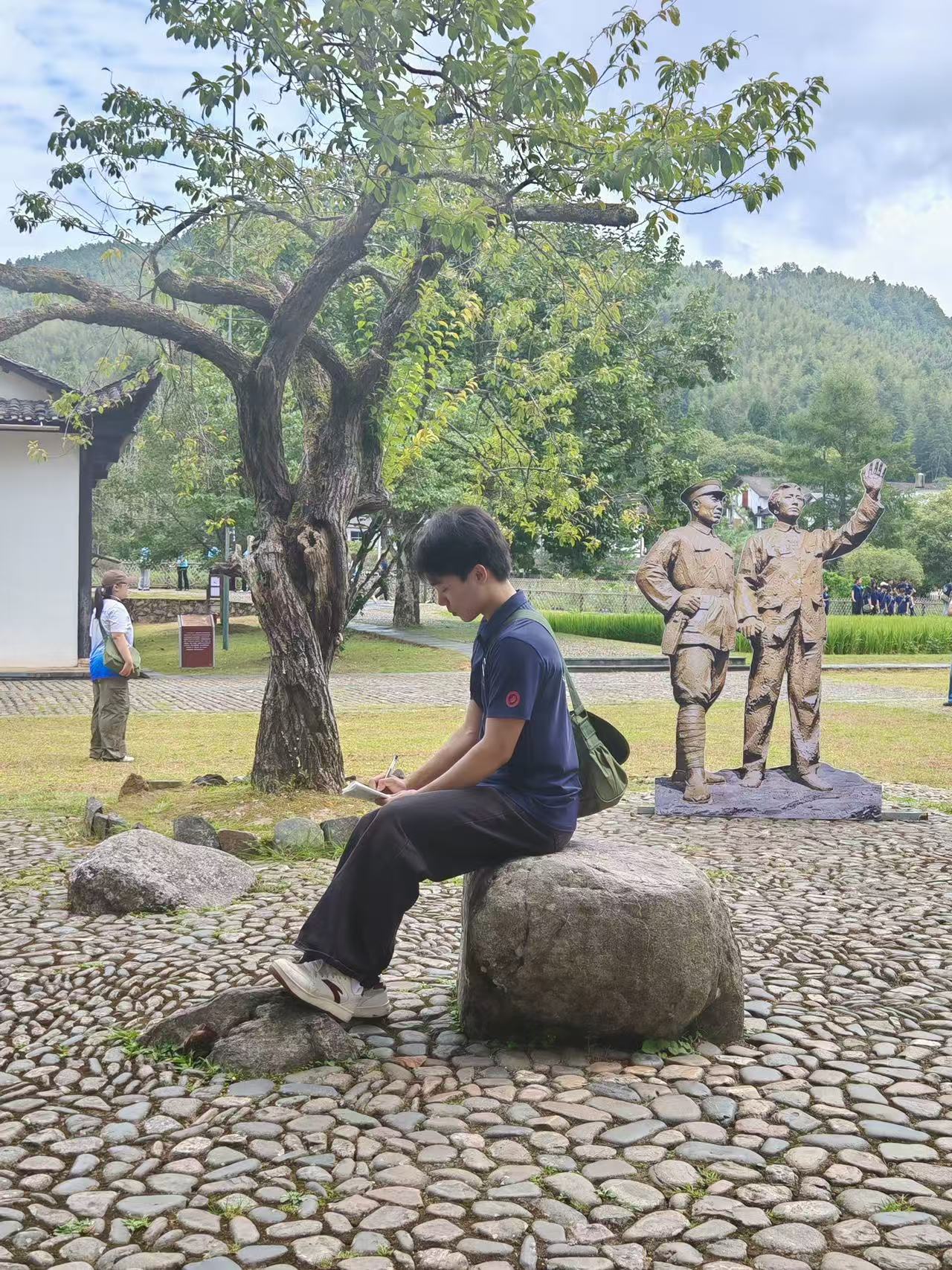 与毛泽东旧居相邻的朱德旧居,则是1984年重新修建的。如今,这些旧居居已已成为极具影响力的红色教育基地,每年吸引着大量游客前来瞻仰学习。毛泽东在此读书思考、部署战斗,朱德等人并肩作战,老一辈革命家以坚韧意志在绝境中开辟道路。邢颖同学提到:“在这里触摸着白屋的残墙和“读书石”,仿佛能感受到当年革命先辈们的坚定信念与顽强意志。”如今,大井成为红色教育基地,不仅是历史的见证,更提醒我们:今日的和平来之不易。我们当铭记先辈精神,传承他们的信念与勇气,在新时代的征程中汲取力量,砥砺前行。