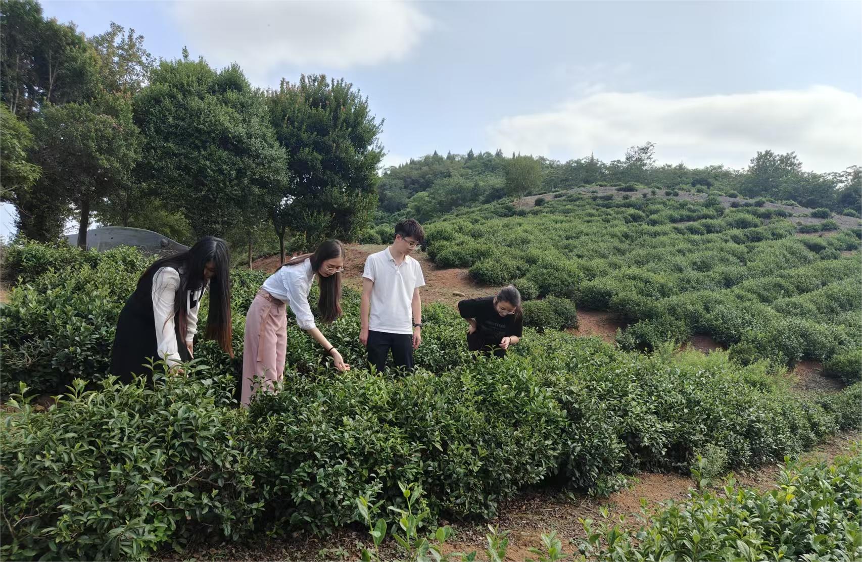 在徐晋喆学长的带领下,青耕乡兴队走进唐僧村茶园基地,实地调研“绿色产业”如何为基层治理注入发展动能。依托富硒土壤与丘陵地貌,唐僧村打造“心悟”茶叶品牌,通过“市场主体+村集体+农户”的模式,带动村民就业增收,实现“一片叶子富一方百姓”;同时植入茶艺体验、茶山民宿等新业态,形成“以茶促旅、以旅兴茶”的良性循环,让乡村既有“文化味”,更有“烟火气”。