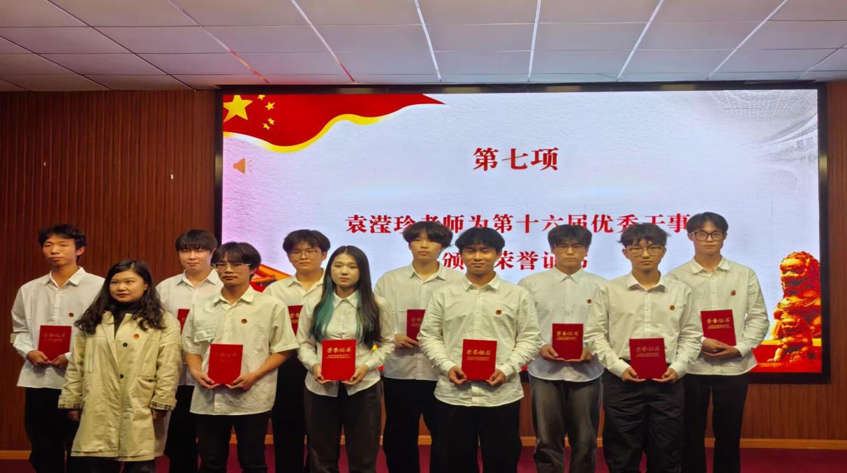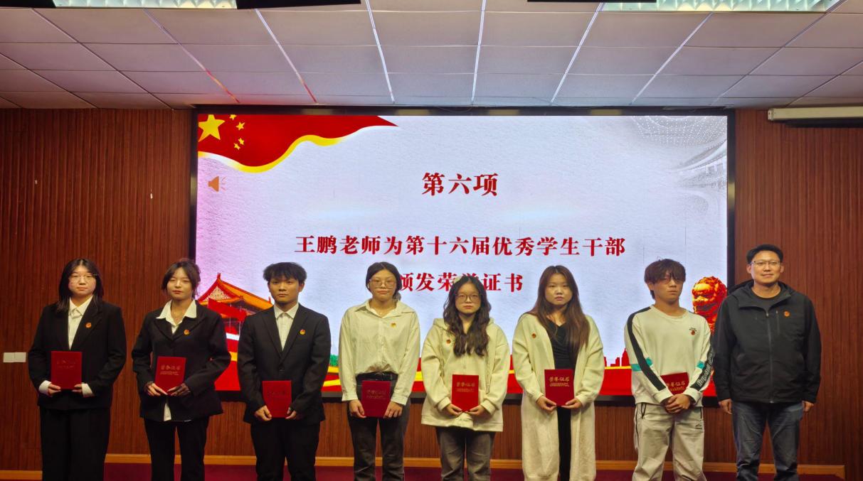 大会第六项:颁发证书,授予聘书。为肯定第十六届学生骨干的辛勤付出,王鹏老师为优秀学生干部陈思睿、王锦阳等同学颁发荣誉证书。