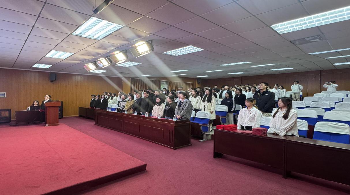 大会第一项:奏唱国歌。全体人员起立,齐唱《中华人民共和国国歌》,嘹亮的歌声彰显着信工学子的爱国情怀与责任担当,也为本次成立大会奠定了庄重的基调。