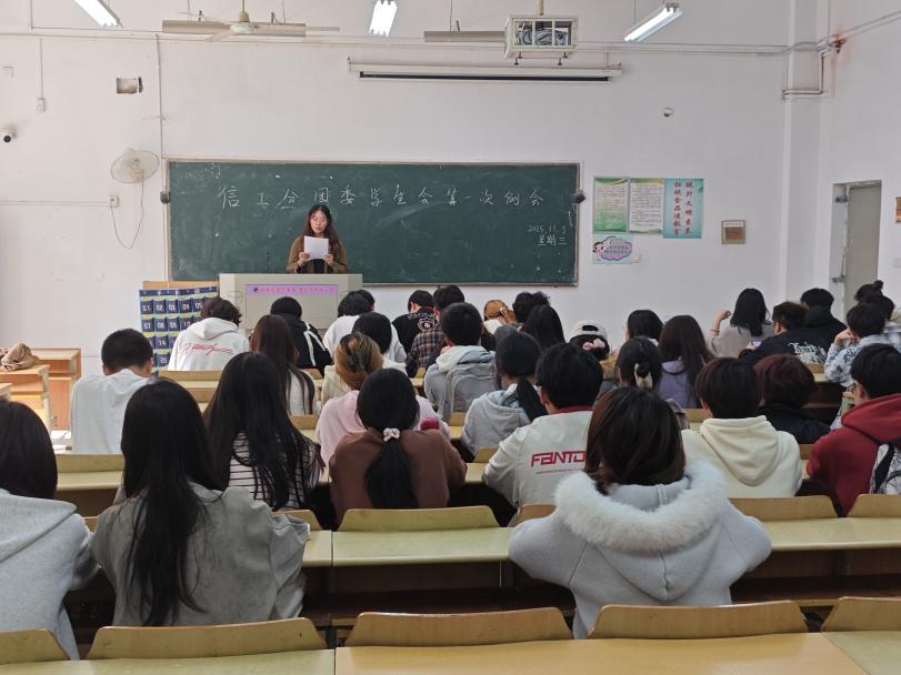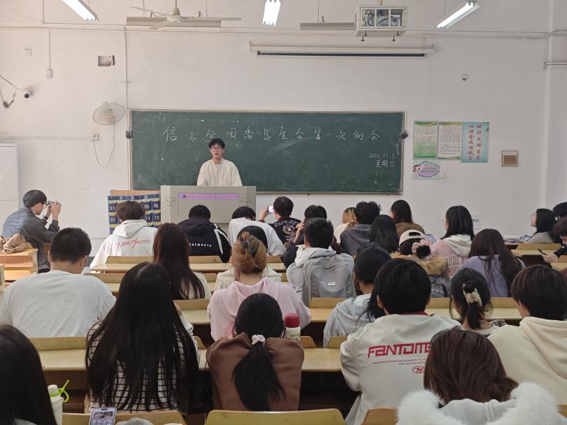 (通讯员:陈金洲)为统筹推进新学期学生工作,明确任务方向,信工分团委学生组织、学生会于2025年11 月 7日中午 12 点 10 分在南二教学楼 104 教室召开信工第十七届分团委学生组织培训会,学生会主席、各部门正副部长及全体学生会干事参与此次会议。
