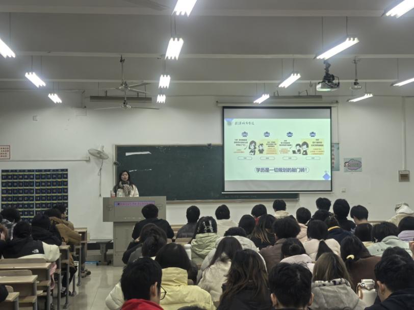 (通讯员:张含玥)11月18日晚,我校升学指导专场讲座在南5401召开,外事办老师刘欣芸以“考研是学历跃升与未来发展的核心基石”为核心,系统解读国内考研与海外“考研”(留学)的双重路径,深刻强调考研对学子长远发展的关键意义,为学子明晰升学方向。