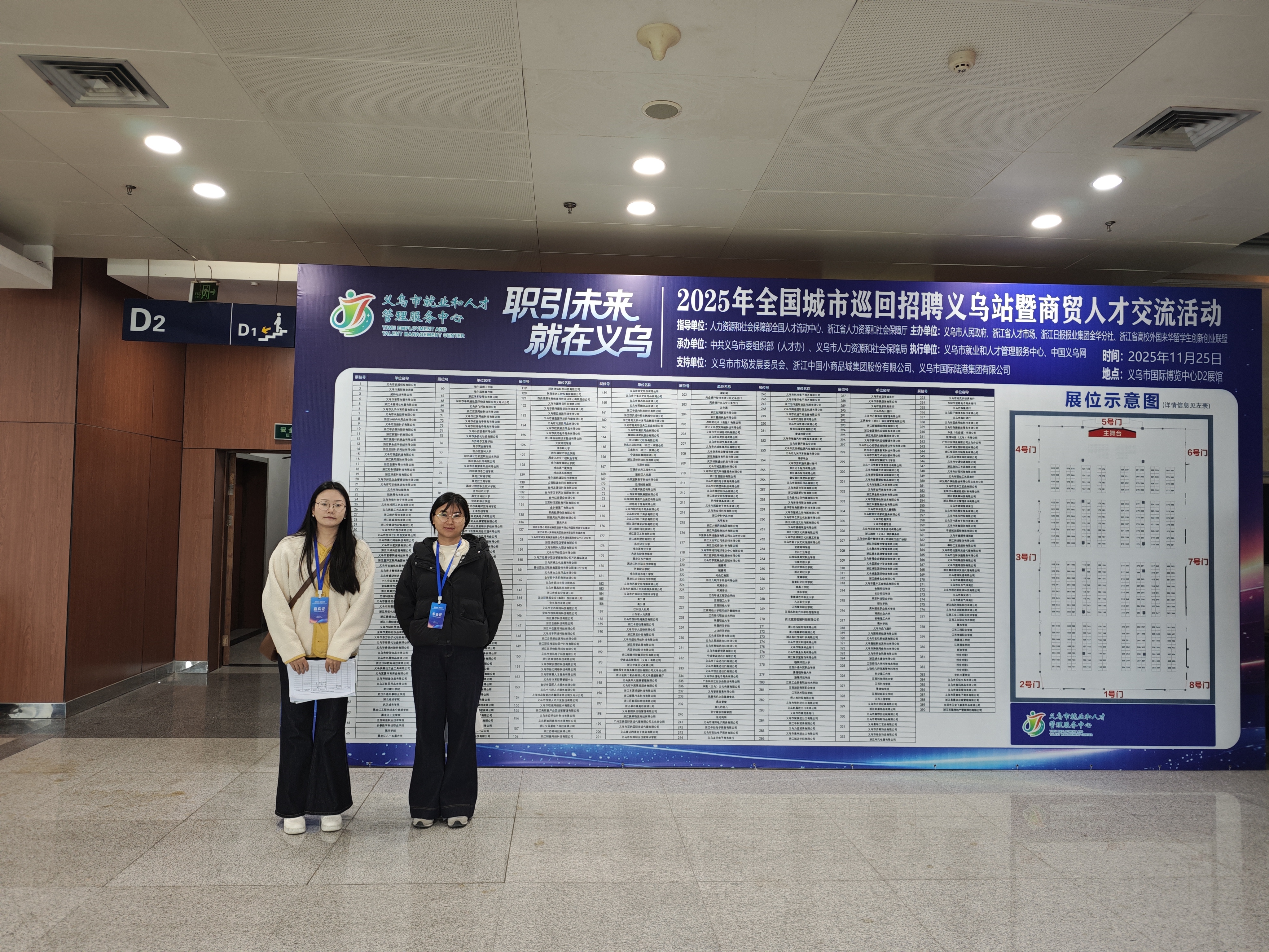 为扎实推进 “访企拓岗” 促就业专项行动落地见效,精准契合区域人才市场需求,全力开拓优质就业资源,2025年11月25日,我校信息工程学部辅导员张宁与经济管理学部辅导员田晓燕共同前往浙江省义乌市,参加在义乌国际博览中心举办的“职引未来·就在义乌”2025年全国城市巡回招聘义乌站活动,积极投身现场校企对接工作,为毕业生就业搭建坚实桥梁。
