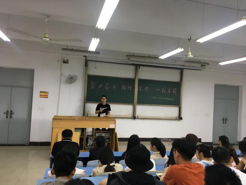 会议由丁孟老师主持,首先是两名2019届学生代表考研经验分享,张细凯和刘瀚旗分别考上了西南民族大学和武汉纺织大学,他们分别从数学、英语、政治、专业课四门课程和时间进度两个维度对复习计划、复习心得、复习情绪处理、考前准备、面试准备及学校专业的选择、调剂经验等方面进行了详细分享交流;其次喻主任对2019届考研情况进行了总结,从今年考研考试成绩、上线情况及调剂情况三方面分析了2019届考研的严峻形势,对2016级学生考研摸底情况进行了分析,并对2020届考研学生提出“努力奋斗、理性选择”的希望和要求。