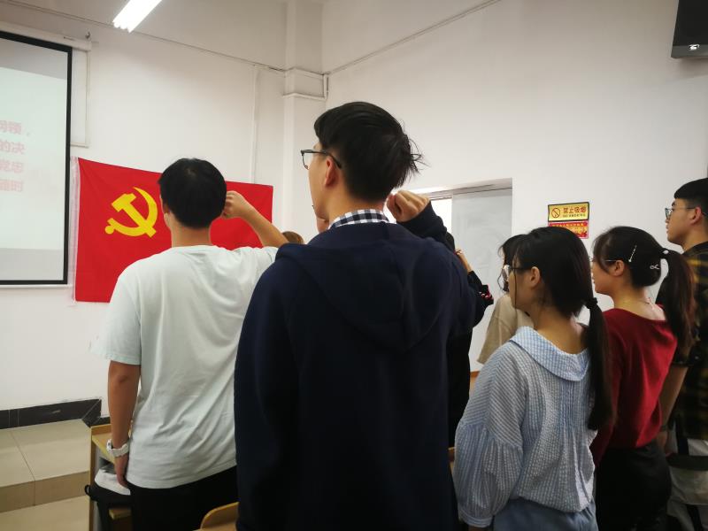 【记者 郭无双】2019年5月5日中午十二点半,信息工程学部党总支在南5301举行了入党宣誓仪式。学部总支副书记喻刚毅同志、第一学生支部书记王春贺同志、第二学生支部书记李军同志、支部辅导员、学生党员和发展对象参加宣誓仪式。