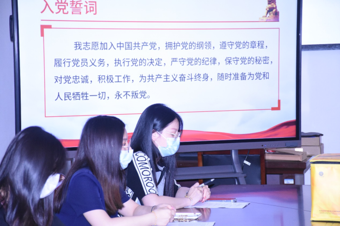 艺术学部第十四期预备党员大会于2022年6月16日中午12:10在教学楼7200教室举行。在召开之前,学部党支部为一众预备党员们准备了水果,肯定了他们在过去的一年里为学部做出的奉献,会议共分为三项议程,入党宣誓、个人汇报、总结。