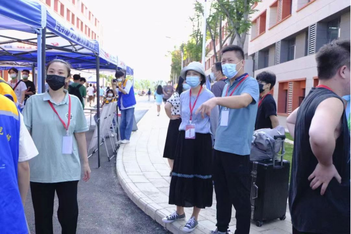 报道当天,学部领导深入新生接待点,现场查看新生报到流程、防疫措施落实情况,并与新生亲切交谈。 向一众班级助理及志愿者提出了要以生为本,为学生报到入学提供周到细致的服务,让新生真切感受学校的关爱和温暖,确保每一位新生都能顺利报到。迎接新生的干部师生在为新生提供服务的同时也要做好个人防护。