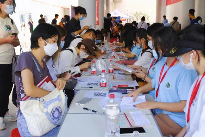 一张张青涩懵懂的萌新们在还未进入校园时,学部副主任吴琼、综合科科长李儒永,新生辅导员段伟庆便早早的去到迎新现场,根据校领导院长陈建勋、党委书记王军指示,事无巨细的安排了各项工作,并带领着一众热情的学长学姐引领他们办理入学手续,及宿舍分配,带领他们走好踏入大学的第一条道路。