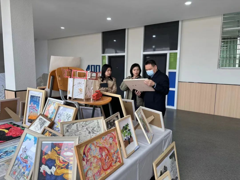 本次展览的主题旨在庆祝二十大的顺利召开,展现学部学子风采,落实校园文化建设,创建文明校园环境。此次活动由艺术与设计学部副主任吴琼,学部副主任钱宇,综合科科长李儒永牵头举办;学院党委书记肖军,应用外语学部副书记胡蓉应邀参观指导了本次活动。