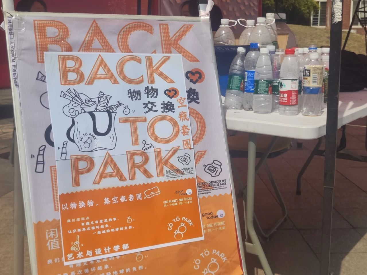 活动现场设置套圈奖品,参与空瓶套圈的同学可以进行套圈来获取礼品,一个小小的摊位,点燃了同学们环保的的热情,学生们纷纷带着收集的空水瓶兑换成套圈,“瞄准目标,巧妙调整角度努力将套圈投向心仪的物品......”