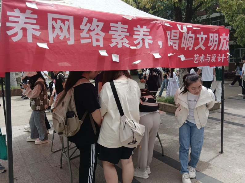 在信息化时代的大背景下,网络已经深深融入我们生活的每个角落。为积极倡导文明上网,培养师生的网络素养艺术与设计学部于4月24日至25日在南一教学楼附近,举办了以“培养网络素养,唱响文明主旋律”为主题的文明上网主题教育活动。