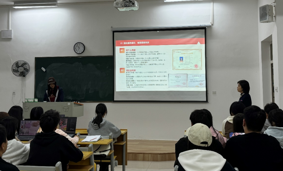 第四位优秀大学生邓枫婉谈到了实践与理论相结合的重要性。她以自己参加各类比赛和社会实践的经历为例,鼓励新生们要积极参加各种实践活动,将所学的理论知识应用到实际中去。“通过实践,我们不仅可以加深对理论知识的理解,还能提高自己的动手能力和解决问题的能力。” 她还建议新生们要多与老师和同学合作,共同完成实践项目,培养团队合作精神。