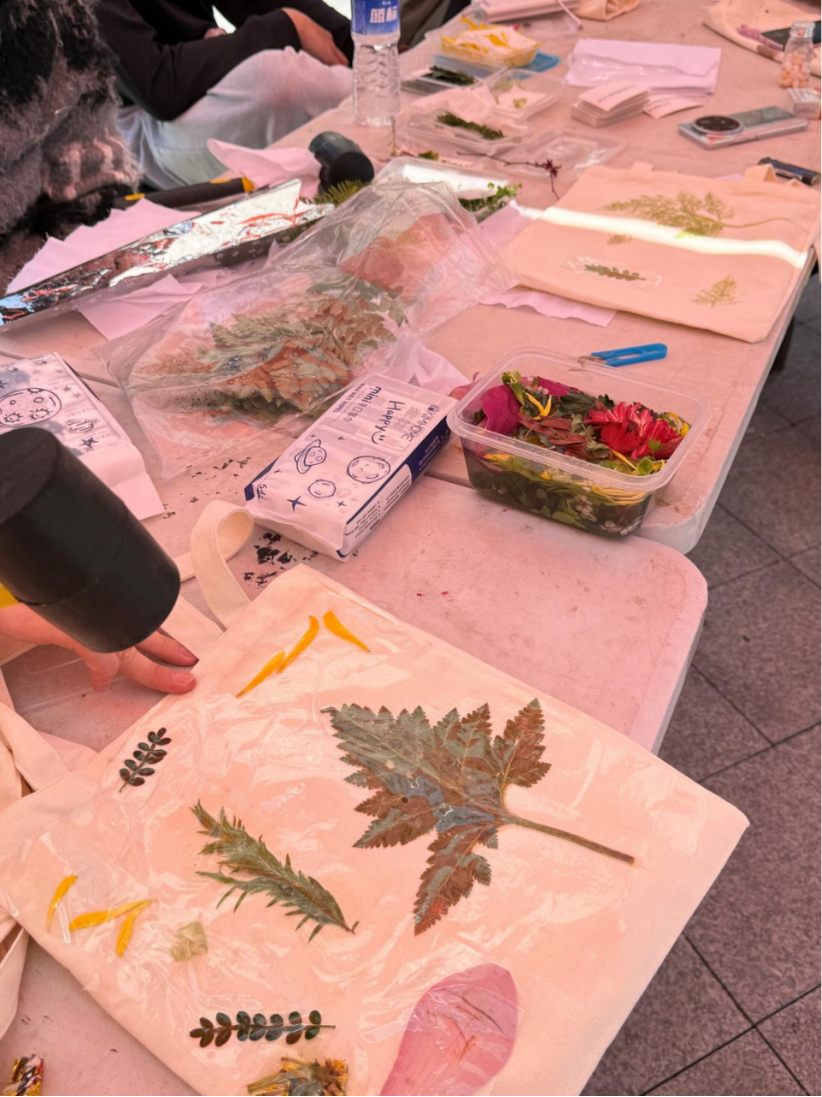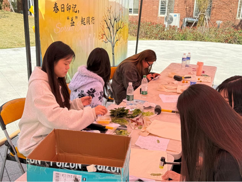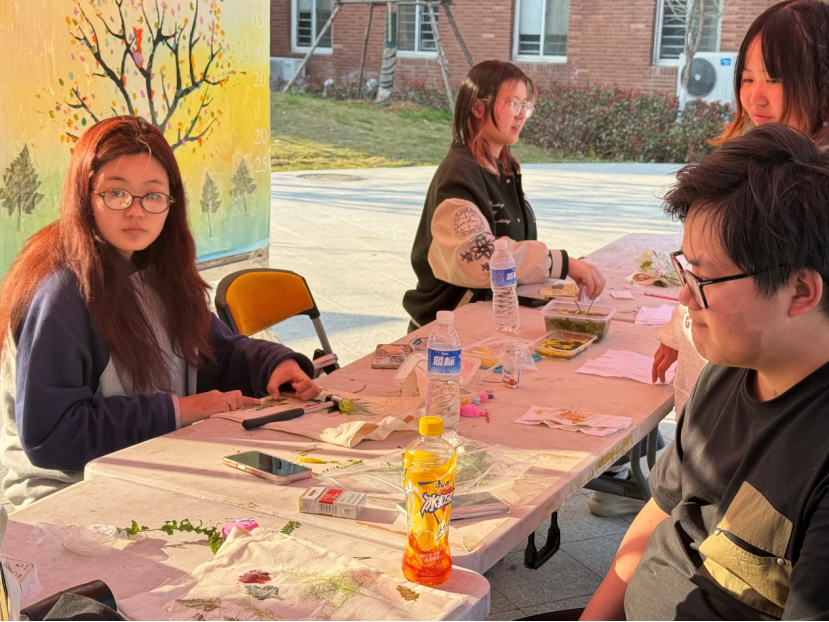 活动特别设置了非遗拓印技艺教学环节,学生会负责同学演示了植物拓染传统方法,同学们在实操中体会古人对自然的观察与艺术表达。