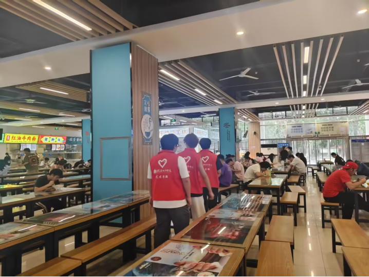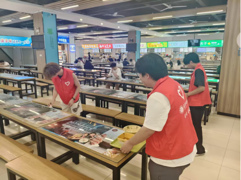学生会评选出“最美餐桌”——桌面干净、餐具归位、用餐文明。上榜餐桌的照片被展示在食堂公示栏,说不定“网红餐桌”就是你!