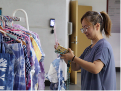 展览以“传统走进时尚,手艺融入设计”为主题。这些作品既体现出对非遗技艺严谨细致的学习态度,更展现了将传统元素与现代审美、实用功能相结合的设计能力:阳新布帖作品中,学生以现代构图与色彩重构理念对传统图样进行诠释;绒花制作中,结合当代饰物需求进行形式创新;扎染与蜡染作品则通过新材料、新技法的运用,呈现出兼具民族韵味和时代气息的纺织艺术品。每一件作品都凝聚着同学们对非遗文化的深刻理解与再创造能力。