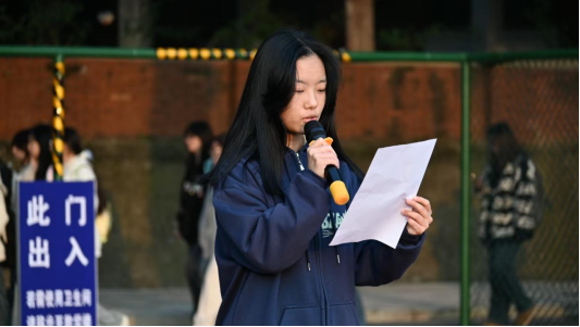 优秀学生代表邓枫婉发言:“青春更该有与国家同频的理想!”她结合成长经历分享蜕变:深耕学业获专业奖学金,组队参与学科竞赛提升协作能力,加入“红色画笔先锋队”赴乡村墙绘助力振兴、开展红色宣讲。她呼吁,爱国非空洞口号,需落实在课堂学习、竞赛拼搏、实践服务中,“愿我们用青春汗水逐梦,让祖国因拼搏更富强!”