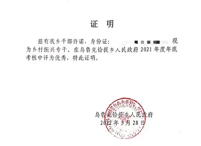工作中许诺坚持基层是最好的课堂,实践是最好的教材,群众是最好的老师。去年三月他申请下沉到乌鲁克恰提乡萨热克巴依村工作,因工作认真被推选为村委会农村发展中心主任,负责巩固脱贫攻坚成果,推进乡村产业建设、农村社会事业发展、农村公共服务、农村文化、农村基础设施和乡村治理等各项工作。任职后村内成立了乡村振兴工作站,配备专干7名。他兢兢业业的工作带动了一方经济发展,于2021年工作备考评为优秀。