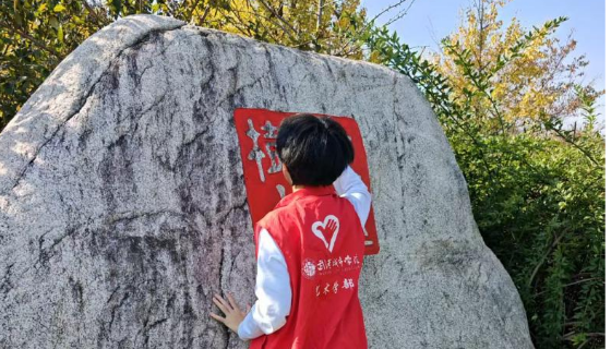 为深入学习贯彻党的二十大精神,弘扬“奉献、友爱、互助、进步”的志愿服务精神,充分发挥党员先锋模范作用,近日,武汉城市学院艺术与设计学部“红艺筑梦”党员先锋队组织开展校园景观石翻新志愿活动,对校园内多处景观石刻字进行清理、修补与重新上色,以实际行动为美丽校园建设贡献力量。