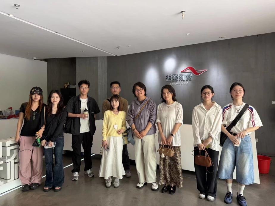 考察期间,学生们先后走进多家深圳知名设计与创意企业,实地了解行业发展动态与人才需求。在上市公司丝路视觉股份公司,同学们参观了数字视觉科技的前沿应用场景,了解了CG技术、虚拟现实、影像互动等技术在建筑可视化、数字展馆、沉浸式体验等领域的创新实践。企业负责人还就数字视觉行业的发展趋势与职业路径进行了专题分享,激发了同学们对未来职业方向的深入
